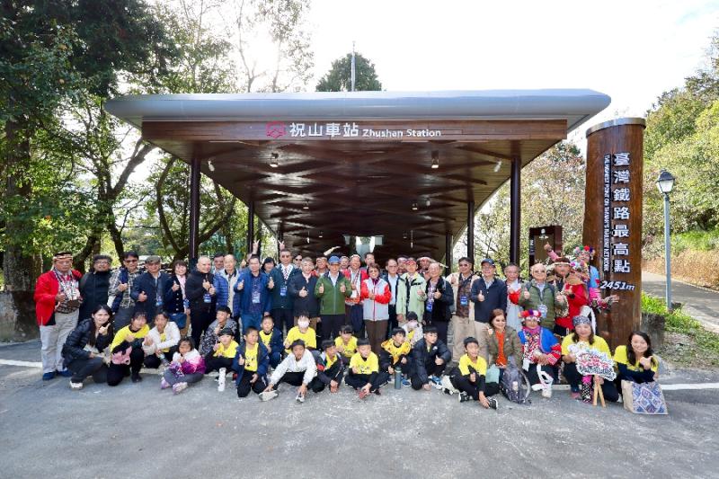 農業部林業及自然保育署阿里山林業鐵路及文化資產管理處(林鐵及文資處)於昨(20)日辦理《再現祝山-迎曦朝聖》啟用典禮。由林鐵及文資處黃妙修處長、林業保育署廖副署長一光、鄒族高德生長老、特富野社汪義福頭目、達邦社汪啟德頭目、香林國小及十字國小全體師生,和關心祝山車站的各界代表共同見證歷史時刻。