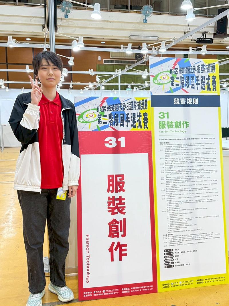 指導老師鄢思宜表示,從分區賽、全國賽一路到國手選拔,長達八至十個月的高強度訓練,對師生而言是一場「馬拉松」。「學生每天利用空檔時間進行密集訓練,備賽過程需要極大的體力、耐力與專注力。」她同時指出,訓練內容涵蓋打版、立裁、縫製與設計,最大的挑戰在於時間管理與心理壓力。為此,她特別安排系統化訓練,設定短期目標並進行模擬比賽,幫助學生逐步提升臨場應變能力與穩定度。鄢老師感性地說:「能夠陪伴學生走過這段難得的歷程,我心中充滿感動與感謝。」她強調,這是學生、學校資源、系主任與全系老師團隊支持的美好結果,也非常感謝勞動部勞動力發展署桃竹苗分署協助培訓。