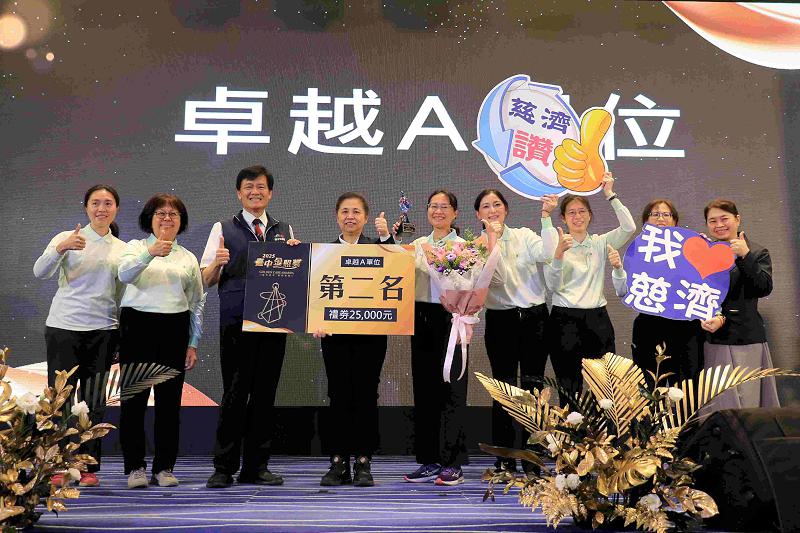 經營長照成果卓越,慈濟臺中長照團隊營運的台中慈濟護理之家與臺中市立仁愛綜合長照機構,在2025臺中金照獎花開並蒂,榮獲「卓越A單位」第二名與「卓越住宿型機構」第三名兩項團體獎。個人獎部分,臺中市立仁愛長照機構徐鐿庭奪得「長照新星獎」第二名,陳秋珍還入圍今年首度增加的「長照巨擘獎」,顯見慈濟臺中長照團隊在長照能力與品質的大幅提升。