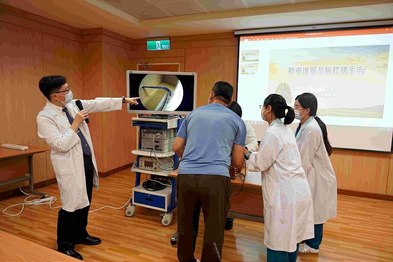 病友會同時介紹最新手術技術,邀請臺中榮總胸腔外科醫師翁任康分享達文西機械手臂手術的優勢,透過3D高清影像與靈活操作,透過微小切口精準切除病灶,減少出血與疼痛,加速術後恢復。台中慈濟醫院胸腔外科醫師柯志霖則詳細解析單孔與多孔胸腔鏡手術的差異,並現場展示儀器,讓病友能直觀理解手術操作方式。