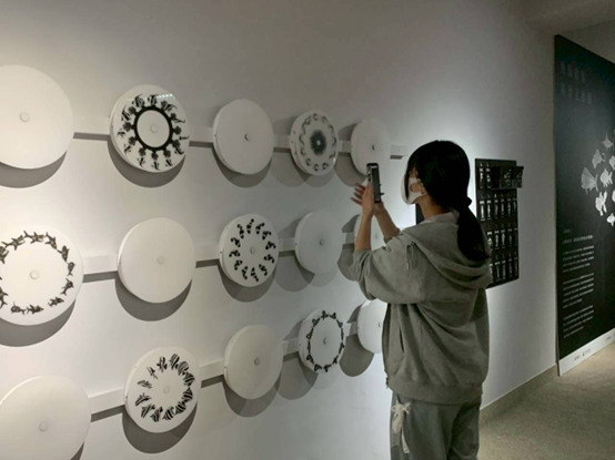 在數位影像高度自動化的今日,《魚韻鎏轉》逆向思索,選擇回歸影像最原始的動能。作品技術源自 Phonotrope(轉盤動畫)與Zoopraxiscope(動物電子鼓)等早期動態影像原理。作品本身不設播放鍵,影像的顯現全然取決於觀者的參與。當觀眾親手撥動裝置,原本拆解、靜止的圖像將在物理性的速度中產生「視覺暫留」,讓魚兒在觀者的指尖下躍然起舞。