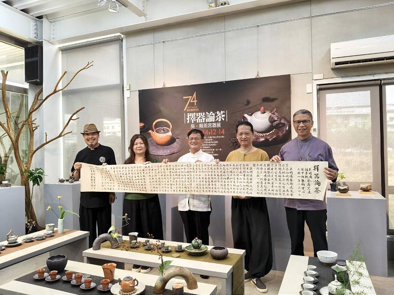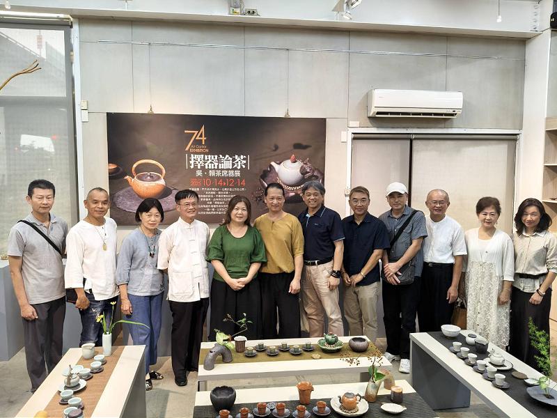 「擇器論茶——吳明儀.賴秀桃茶席器展」自10月14日至12月14日於74藝術中心展出。國立台灣工藝研究發展中心主任陳殿禮及前文建會主委洪慶峰等貴賓親臨開幕茶會致詞祝賀。茶湯盈盞,不僅源於葉與水的相遇,更藏於壺之形與色的契合。「茶因器彰,器因茶顯。」茶與器的結合,不只是實用功能的延伸,更是一場關於美學、品味與文化的深層對話。