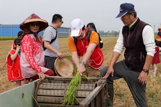 活動從白河農田展開。契作農民葉奕志以多年種稻經驗,帶領大家實際下田操作割稻技巧,從握刀、彎腰、綑束到搬運,一步一步教得仔細。他分享務農心聲:「農業沒有捷徑,要靠天、靠地、靠自己的耐心。企業願意用認養方式支持我們做友善耕作,對農民來說,是很重要的力量。」在其引導下,參與者第一次親手割下屬於自己的稻穗,也第一次深刻感受到「食物得來不易」