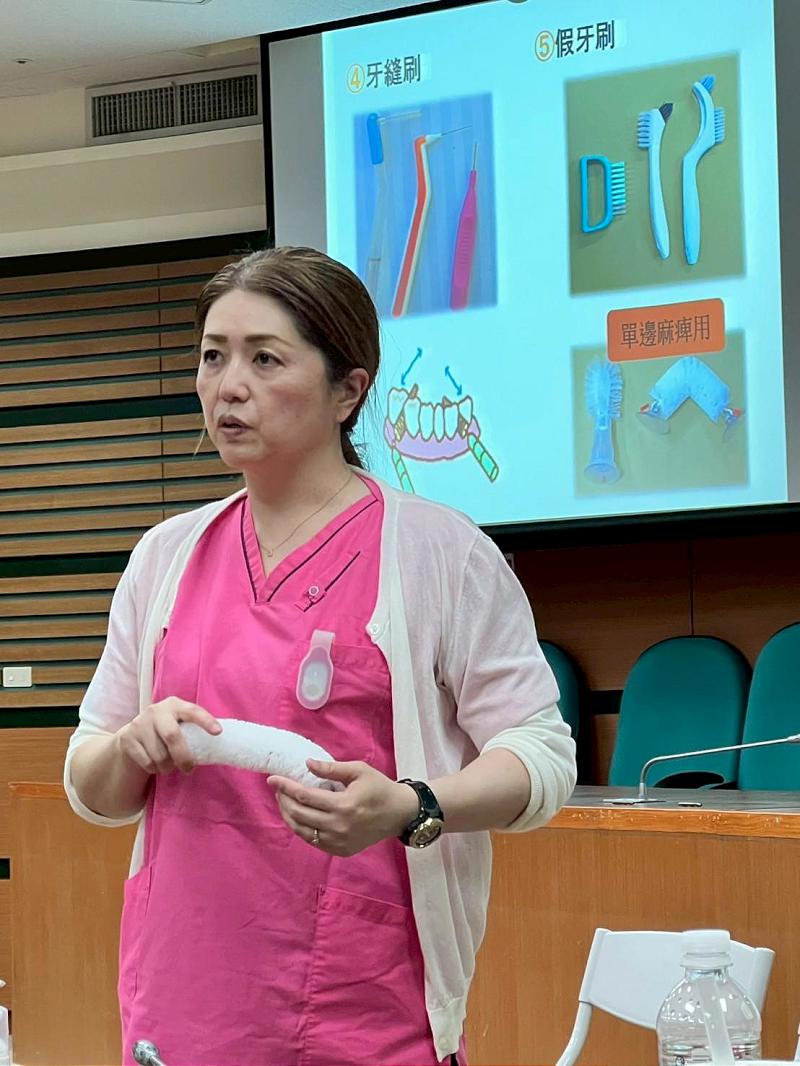 此次課程特別邀請州鵬會齒科衛生資深專家浜田沙織女士擔任主講講師,分享其12年高齡與失智長者口腔照護經驗與教學實務,並以預防誤嚥性肺炎與提升生活品質為重點,傳授日本第一線照護知識。此外,州鵬會牙科原田醫師深入解析如何整合牙科醫師、齒科衛生士與照服員團隊,共同提升機構口腔照護服務效能;而州鵬會人才培育部長大久保義人先生則以管理者視角,說明該機構如何透過溝通訓練與教育制度建立內部凝聚力與照護品質,提供台灣長照機構具體可行的組織發展藍圖。