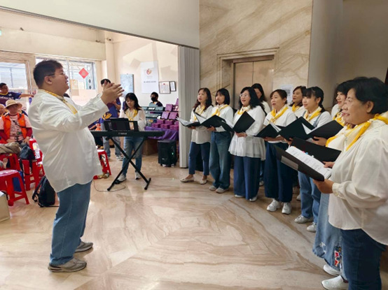活動同時安排音樂關懷,由「金色女聲合唱團」帶來〈聽海〉、〈愛神的箭〉等曲目,清亮歌聲讓據點化身為溫馨的小型音樂會;「女創管樂團」則以薩克斯風與二胡演奏〈甜蜜蜜〉、〈望春風〉等熟悉旋律,悠揚樂聲為現場長輩帶來輕鬆愉悅的時光,也讓整體氛圍更加溫暖安定。