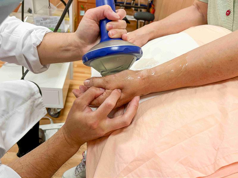 張欽凱醫師指出,「媽媽手」不只出現在家庭主婦,美容美髮業、手搖飲店員、廚師,以及需要反覆運用手部力量的運動員,都是高風險族群。一般來說,初期病人透過冰敷、適度休息,多能逐漸復原,但若疼痛持續不退就需進一步治療。許女士工作責任感強,短時間內無法停工,張醫師評估後,建議採用體外震波治療(俗稱骨震波),先處理疼痛問題再配合生活調整。