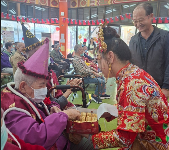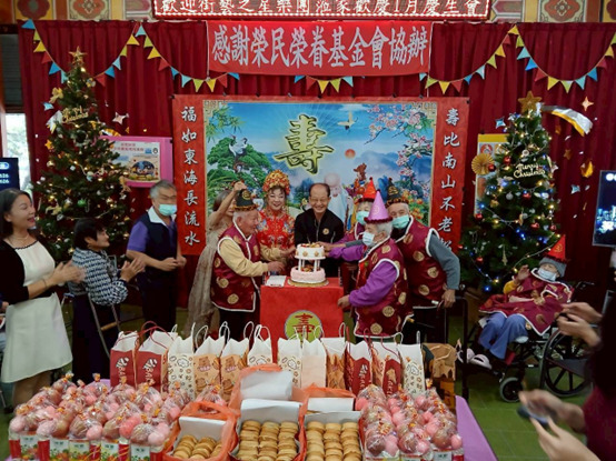 除精彩音樂表演外,街藝之星樂團更貼心準備100份小禮物致贈住民長輩,團長貼心準備了紅蛋、蓮霧及小餅乾,親自用心包裝,又訂了有名的萬丹紅豆餅給住民長輩食用,為壽星送上誠摯祝福,讓長輩們驚喜又感動,紛紛表示這是一場難忘又溫暖的生日慶祝活動,團長與團員熱情跟住民長輩擁抱及聊天,榮家充滿了溫馨笑語。
