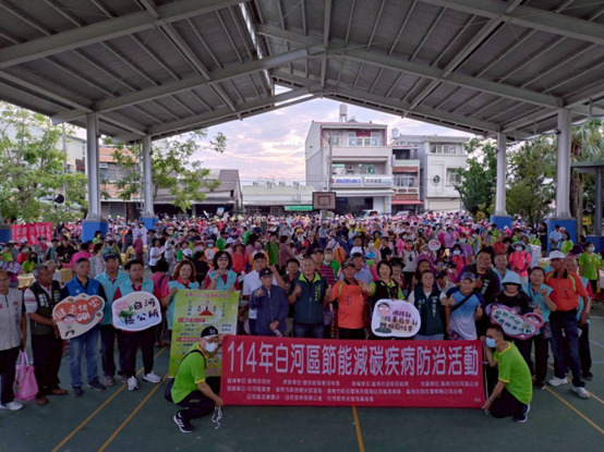 白河區今年曾受丹娜絲颱風重創,鄉親在災後展現出堅韌與團結,攜手完成重建。今年的健走活動更具深遠意義,象徵著「走過風雨後的再出發」。透過健康的腳步,融合節能減碳、防治疾病的理念,傳遞「災後復健、生生不息」的精神,展現白河人昂首向前、共創希望的力量。