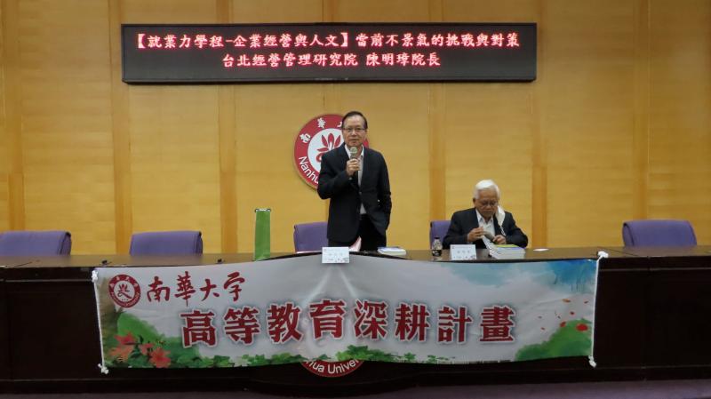 南華大學於日前舉辦「就業力學程-企業經營與人文講座」,特別邀請台北經營管理研究院院...