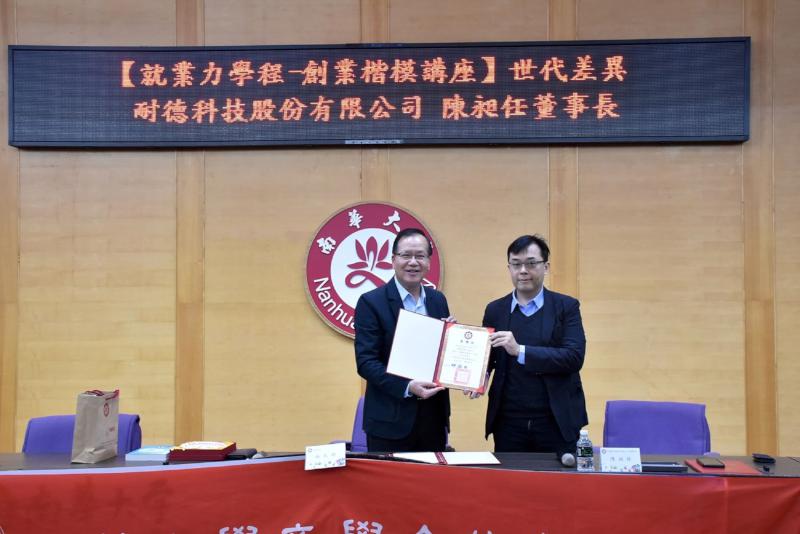南華大學於日前舉辦本學期首場「就業力學程-創業楷模講座」,特別邀請耐德科技股份有限...